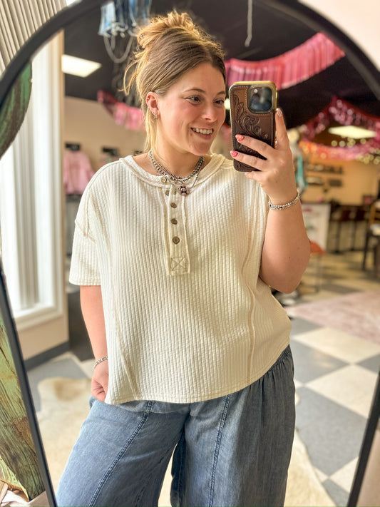 RISEN: High Waist Pintuck Wide Leg Jeans