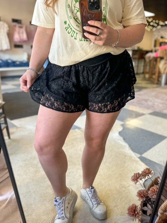Layered Ruffle Lace Shorts in Black