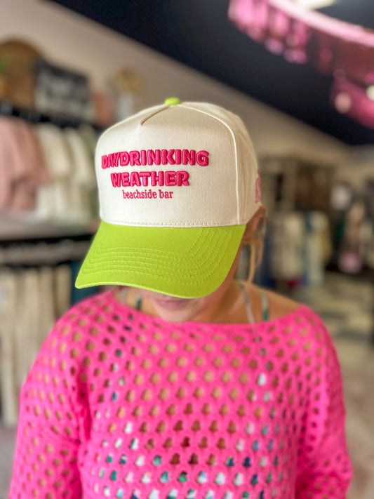 Day Drinking Weather - Lime Green Trucker Hat