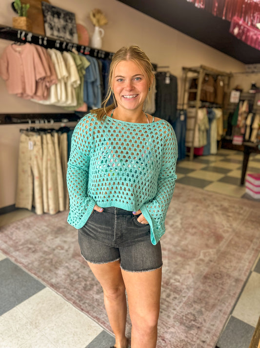 MICA: Grillo High Rise Medium Wash Shorts