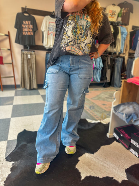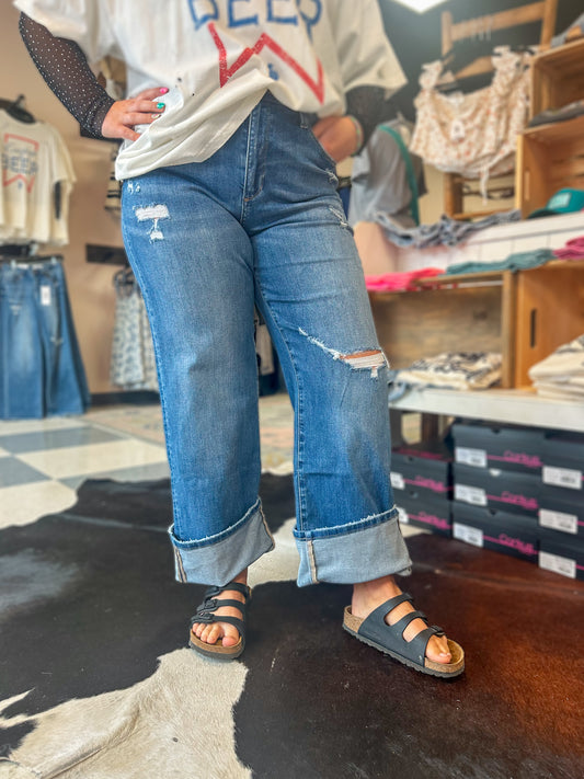 MICA: Rhinestone and Pearl Wide Leg Jeans