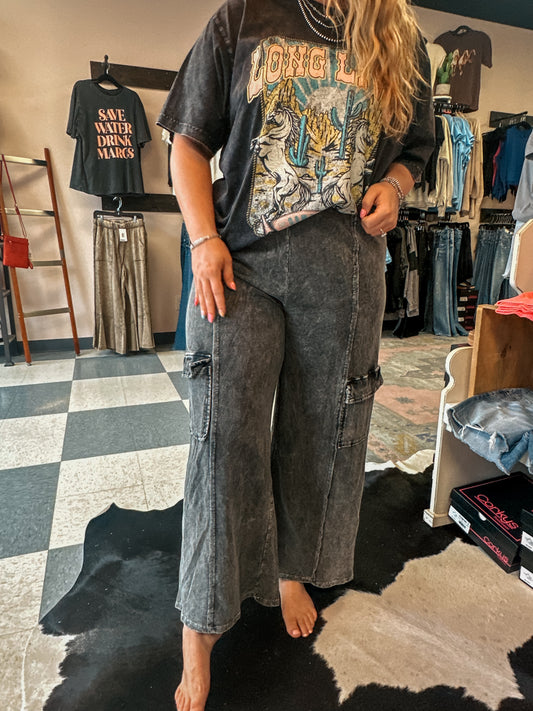 PRE:ORDER Washed Leopard Patchwork Wide Leg Pants