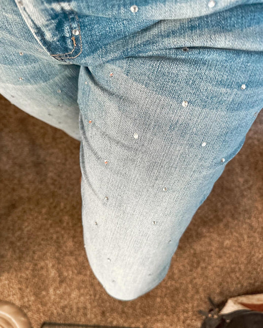 MICA: RHINESTONE SUPER HIGH RISE STRAIGHT LEG JEANS