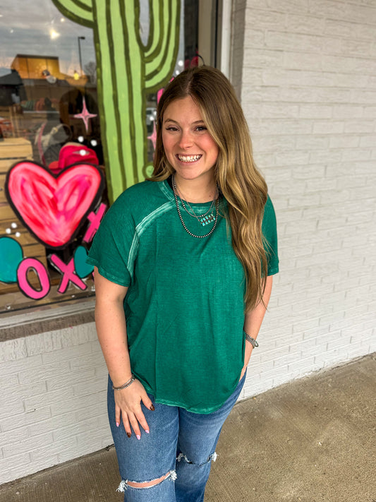 Curvy Corded Cuff Sleeve Raw Edge Top in Dark Olive
