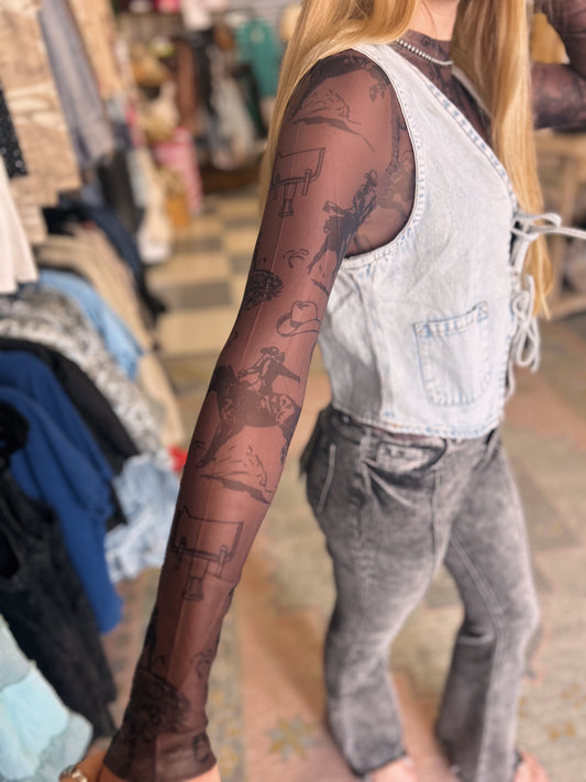 Sold outThe Cowgirl Mesh Mock Neck Top