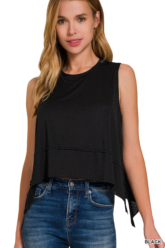 Light Grey Shark Bite Side Slit Short Sleeve Top