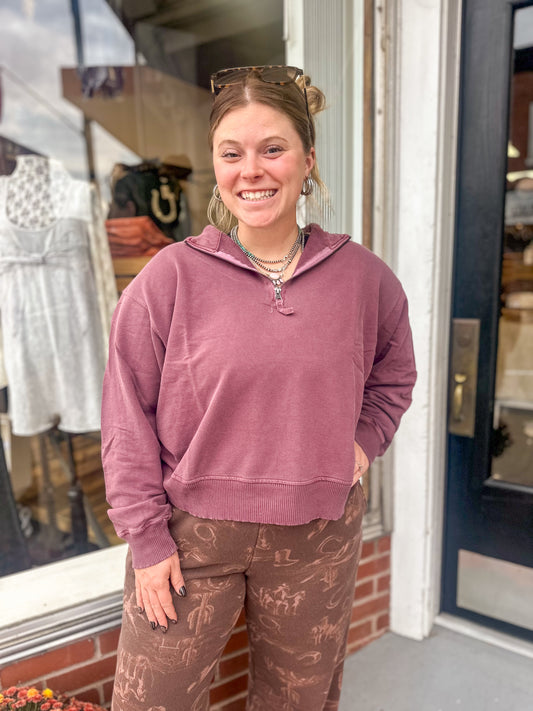 Eggplant French Terry Washed Quarter Zip
