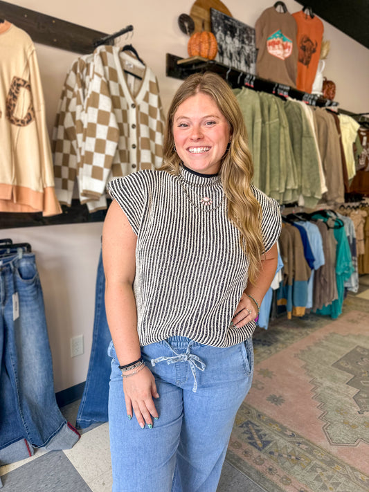 Sleeveless Two Tone Knit Sweater Vest