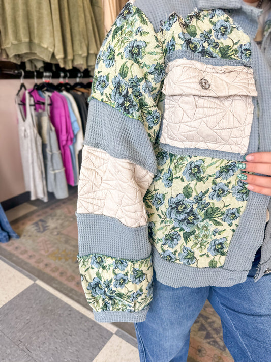 Cornflower Blue Floral Quilted Shacket