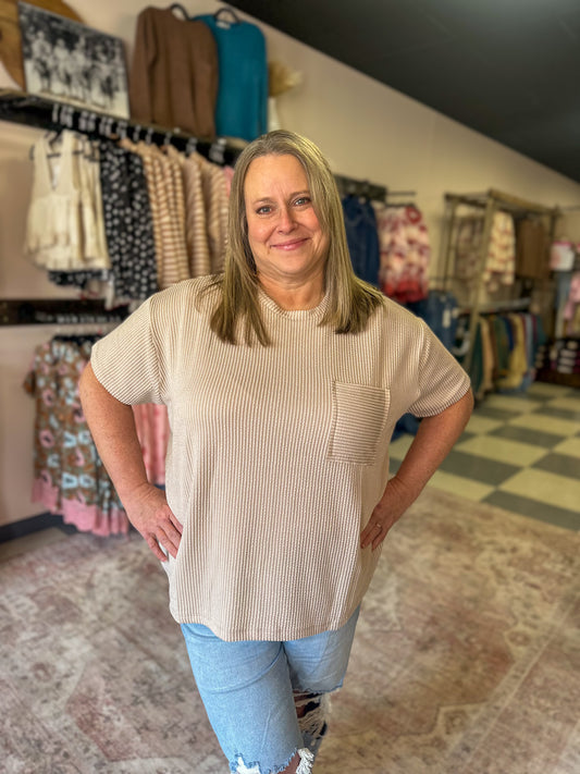Ash Mocha Ribbed Pocket Tee