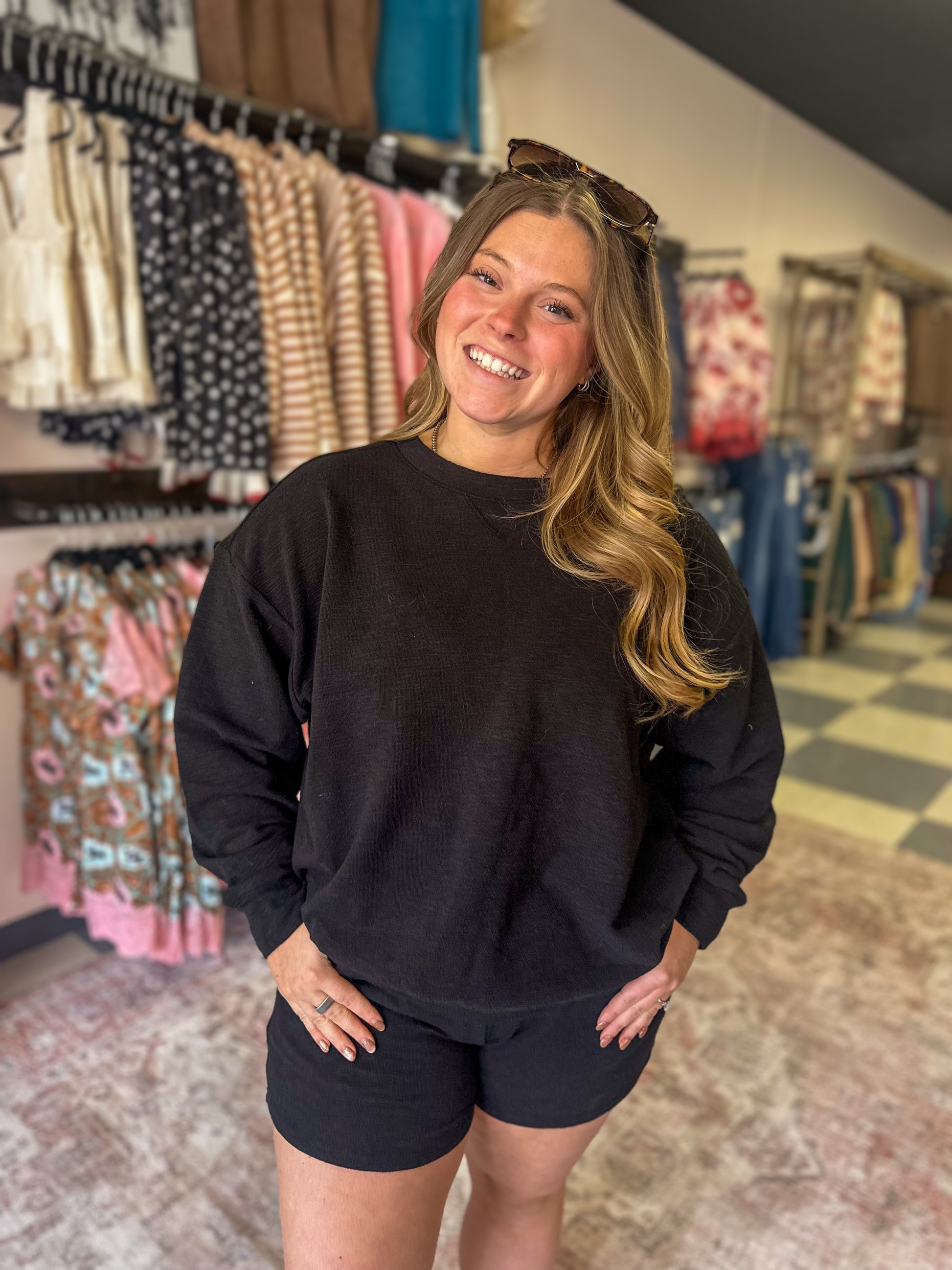 Black Crewneck and Shorts Set