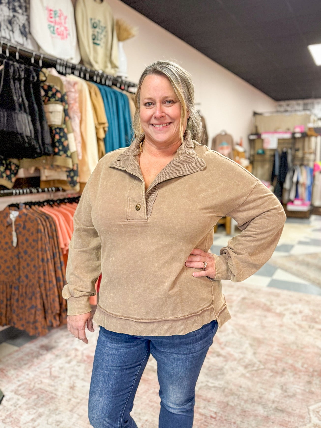 Mock Neck Mineral Washed Pullover