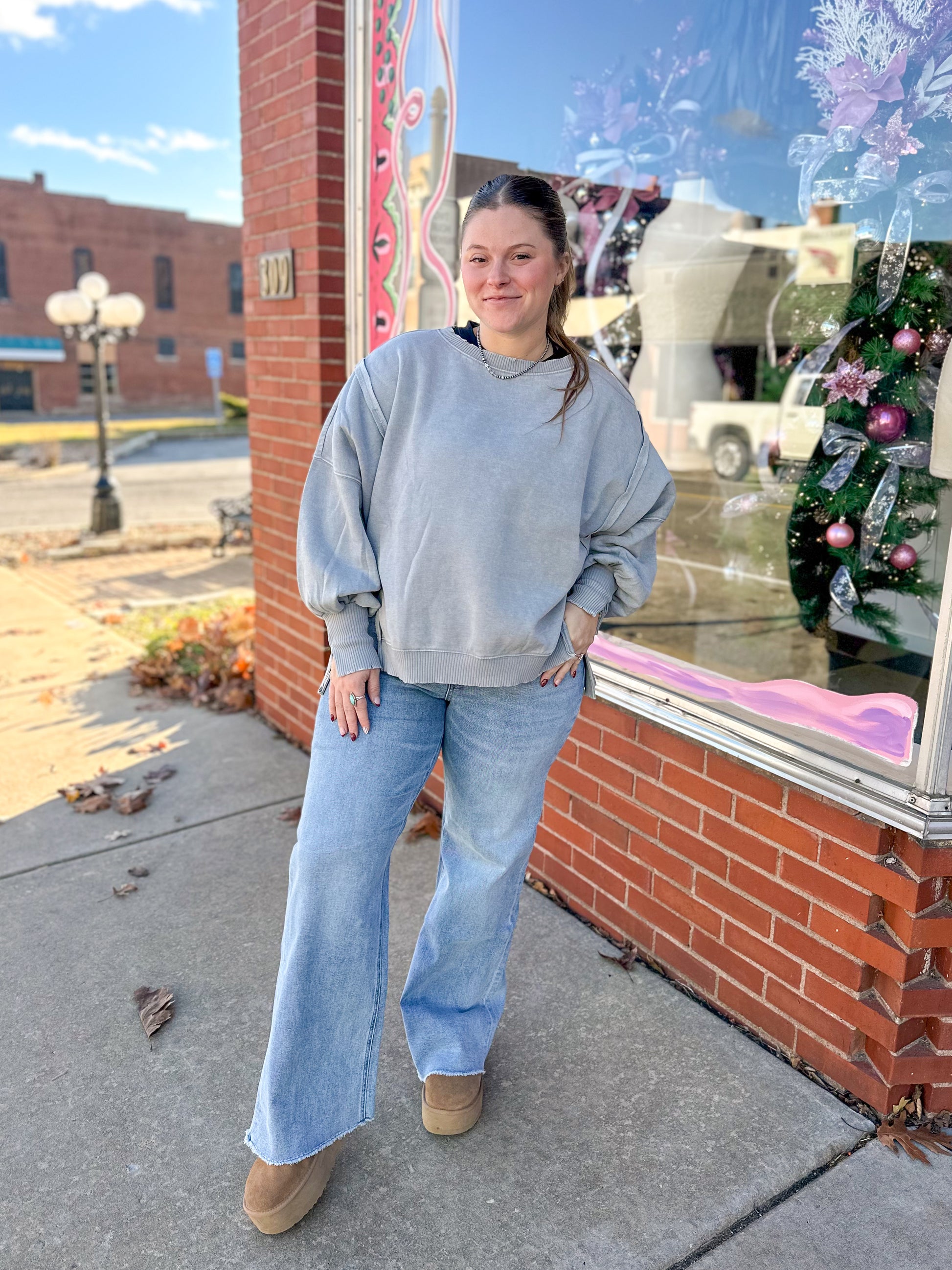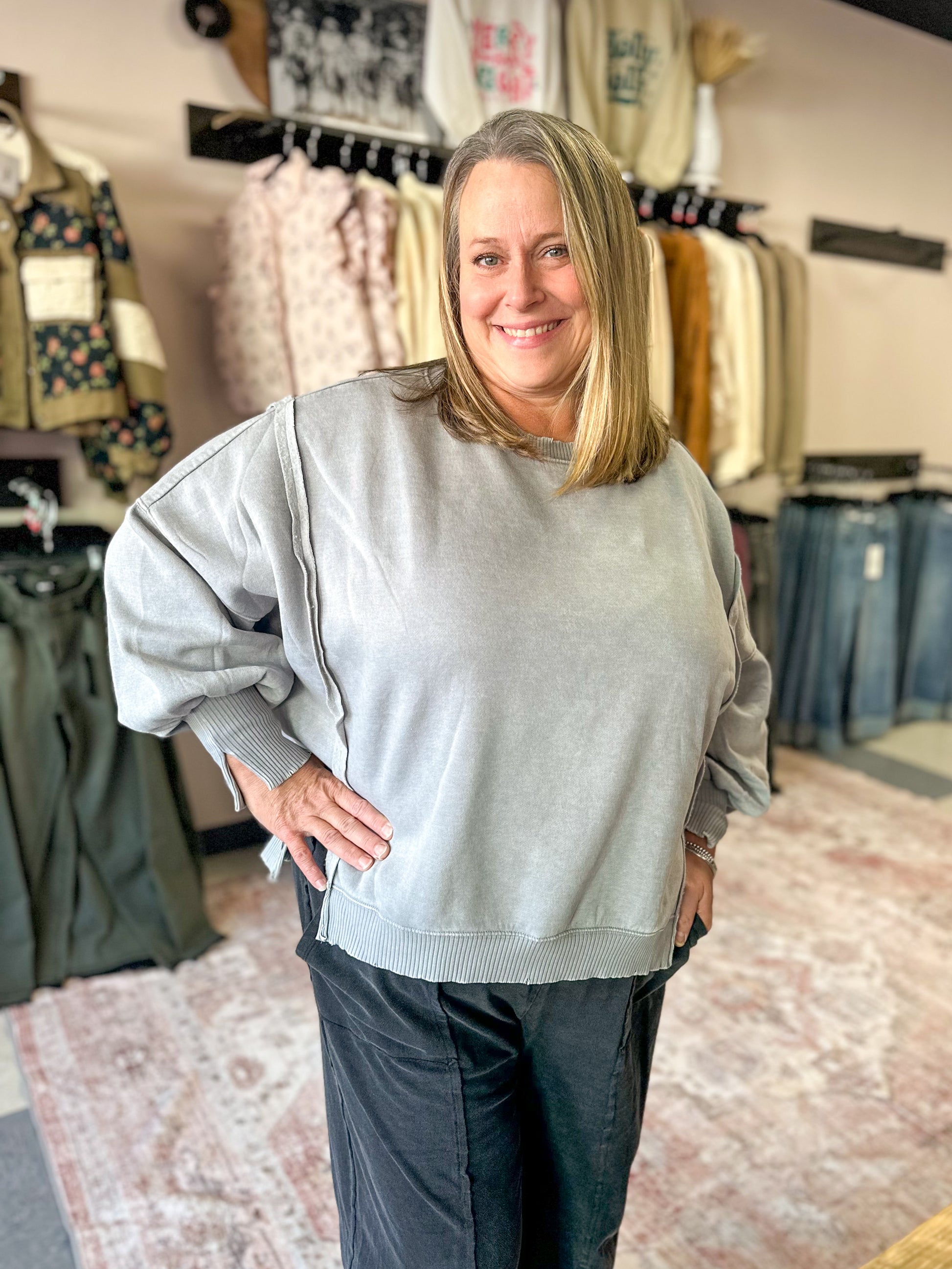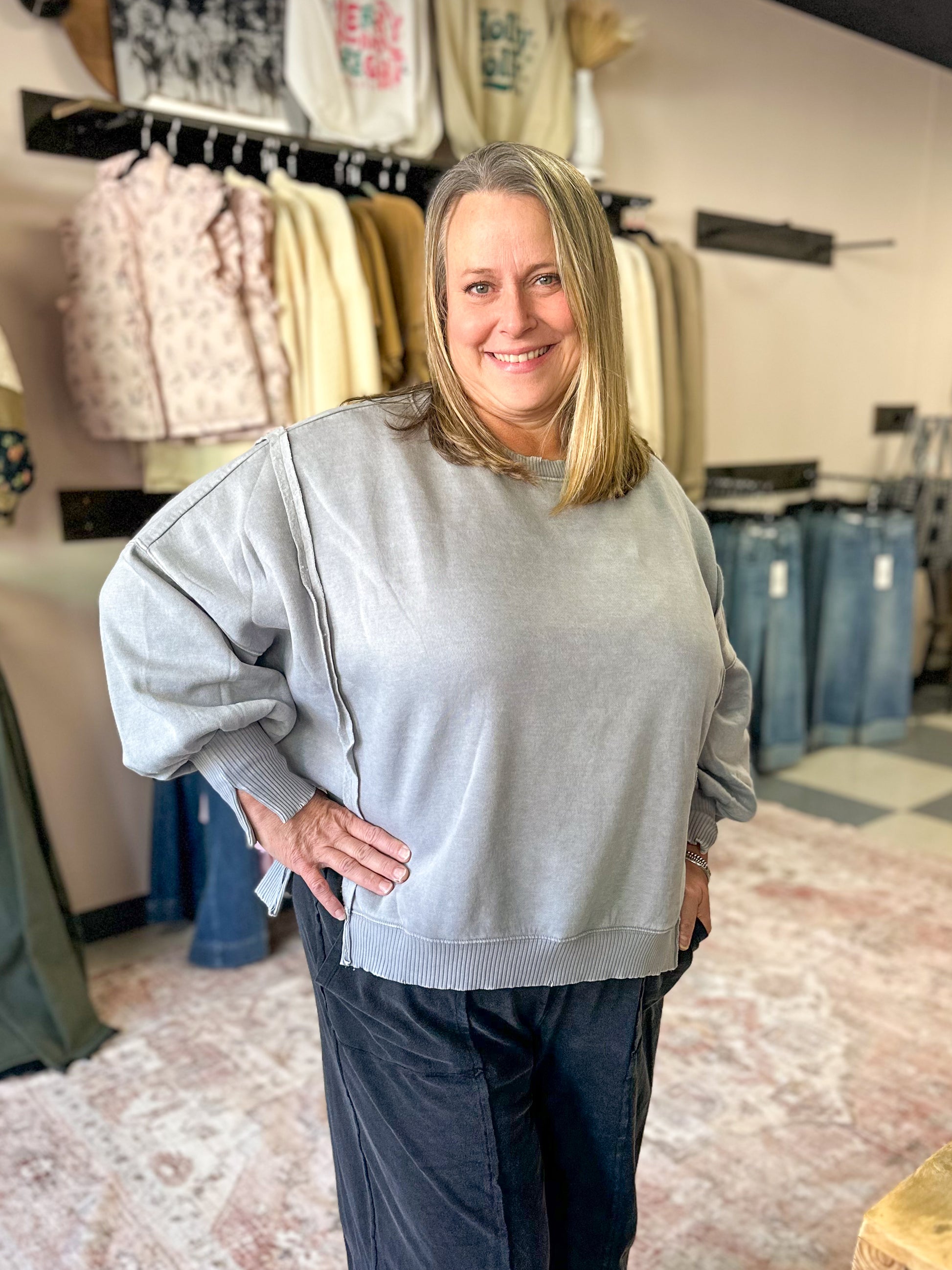 Sleet Grey Acid Wash Hi-Low Pullover