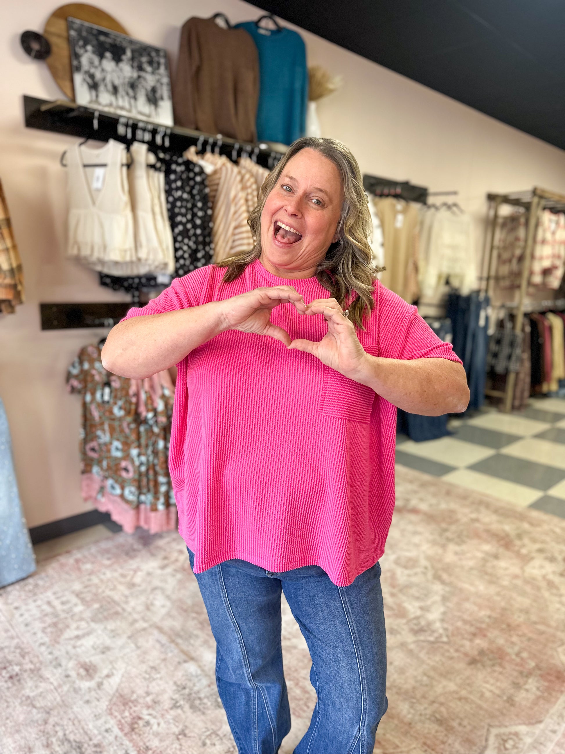 Hot Pink Ribbed Pocket Tee