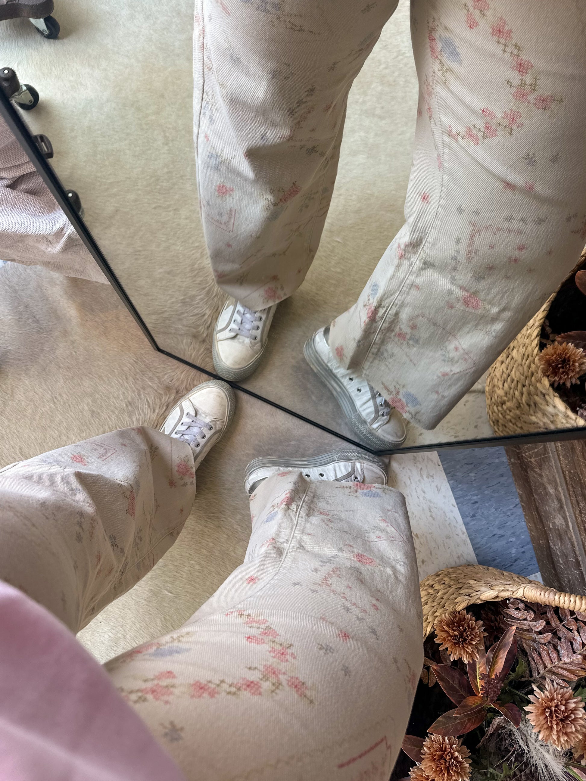 Vintage Patchwork Printed Crop Jeans